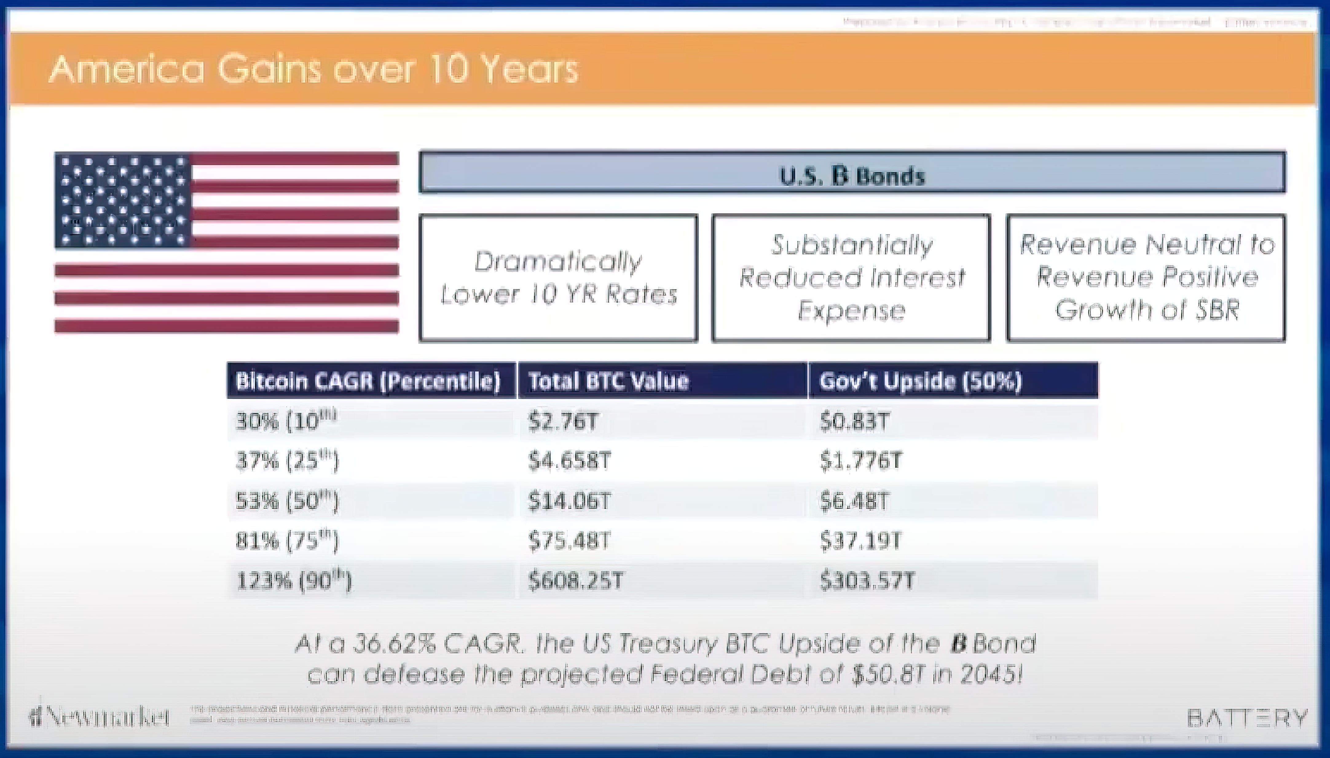 Even after accounting for the $200 billion allocated to Bitcoin purchases, the net present value savings are estimated to be around $550 billion.