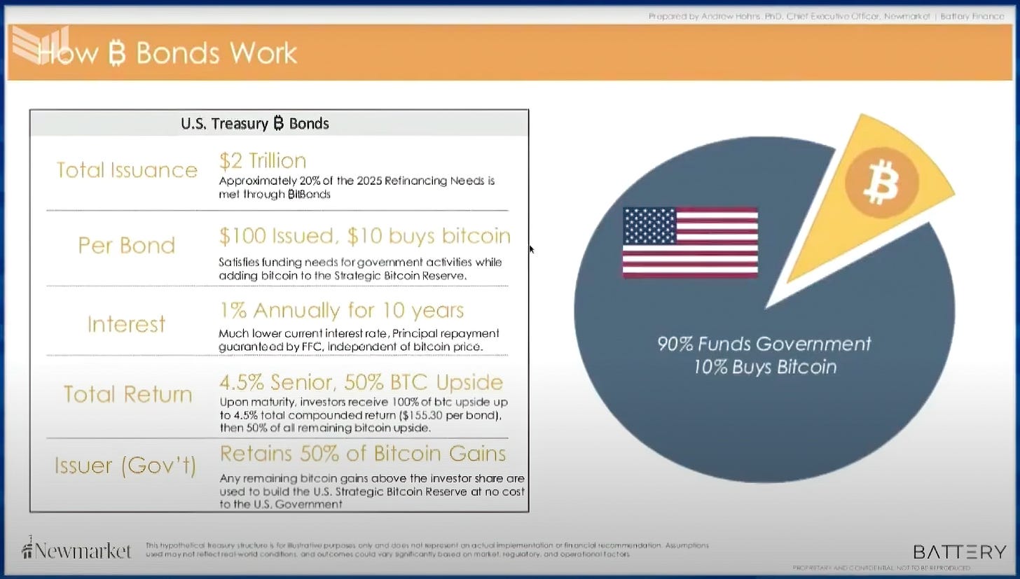 This allows investors to benefit from Bitcoin upside while also allowing the Treasury to retain a portion of the gains, effectively subsidizing the government's debt