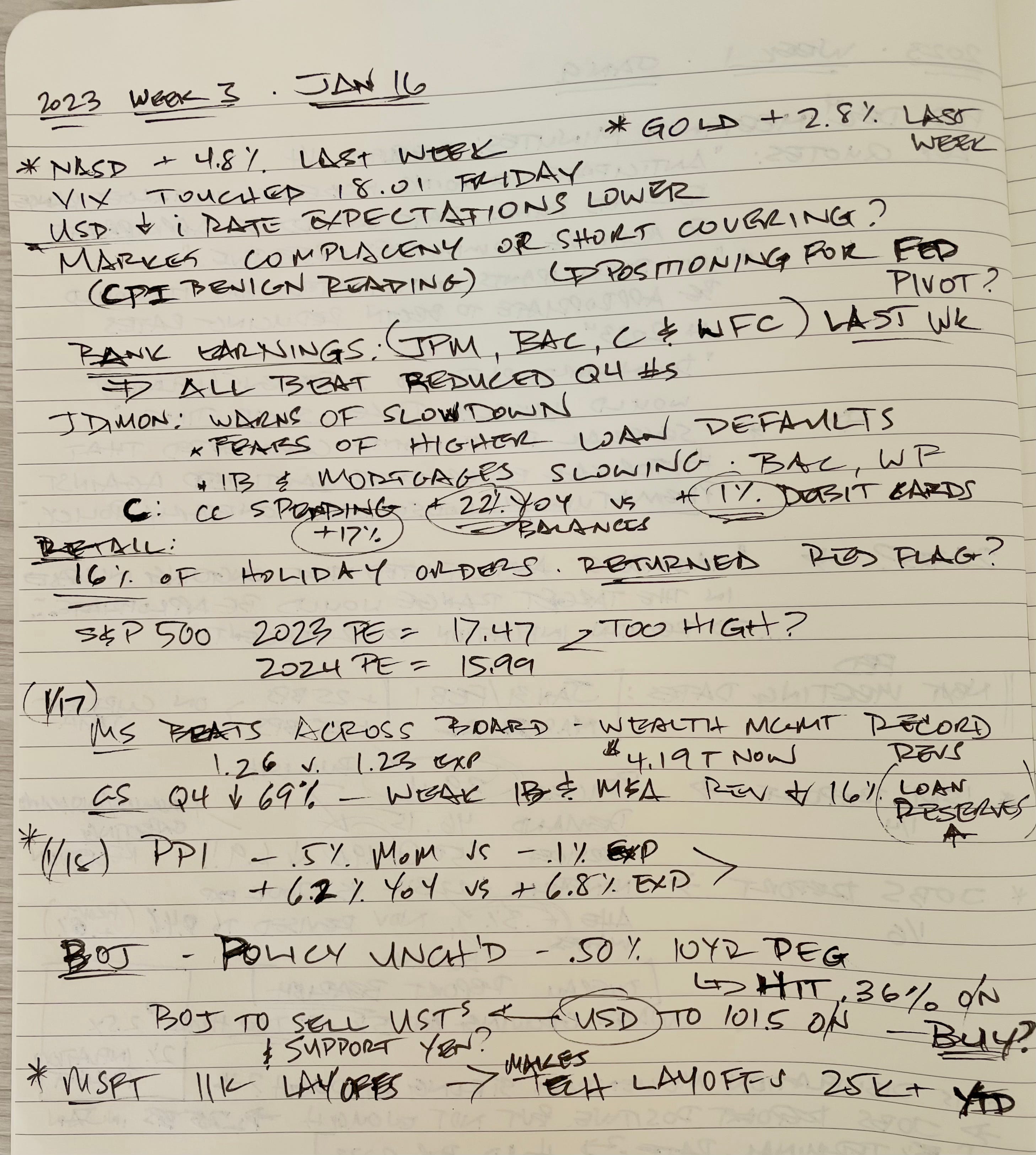 I’m sitting here scribbling market related notes, and this is what has jumped out at me during this already volatile week. 🤯 Check out this screenshot of my notebook: