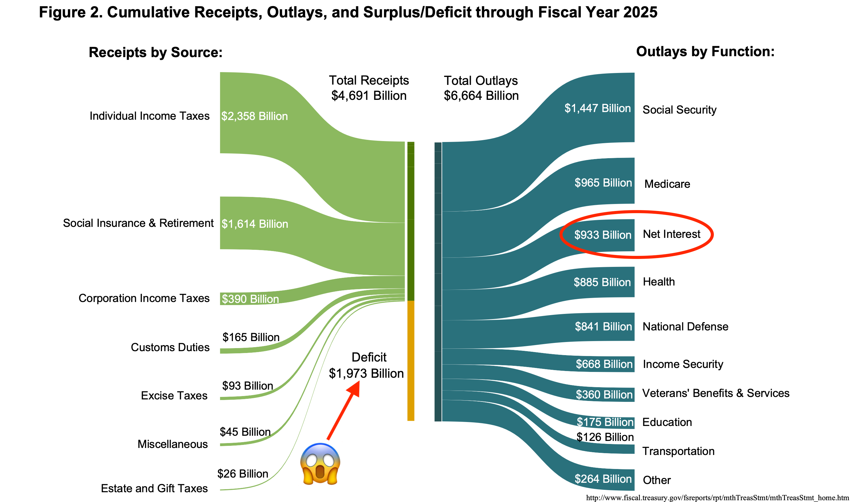 Let me put that in perspective: weâre spending roughly $3 billion per day just on interest payments. Not principal. Not paying down debt. Just interest.
