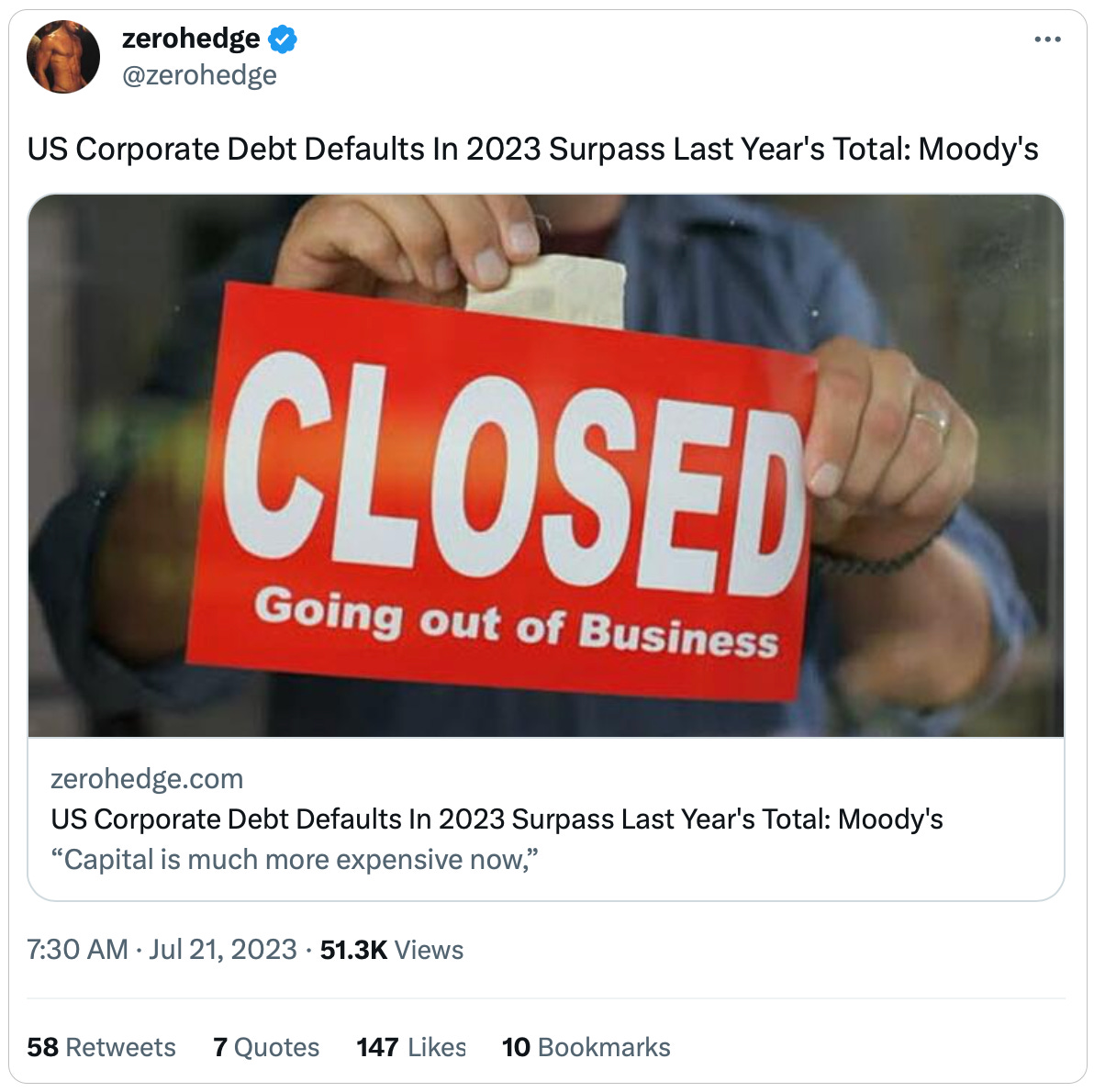 Well, through June, the US has seen fifty-five defaults. That’s about 50% more defaults thus far this year versus a total of thirty-six defaults in all of 2022.