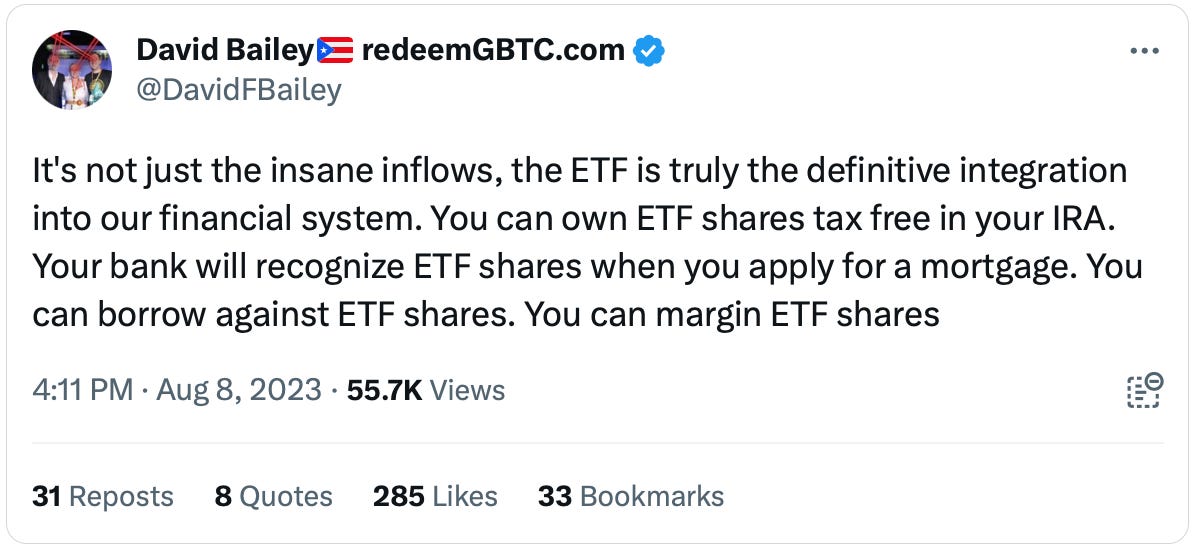 Which makes one wonder why the SEC has thus far refused to approve a spot-Bitcoin ETF, especially as they have approved numerous other far more exotic and strange themed ETFs already.