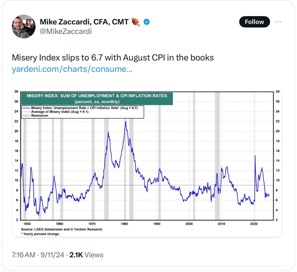 And so, when we add the unemployment rate and the inflation rate together, we get what is called the Misery Index. 😭
