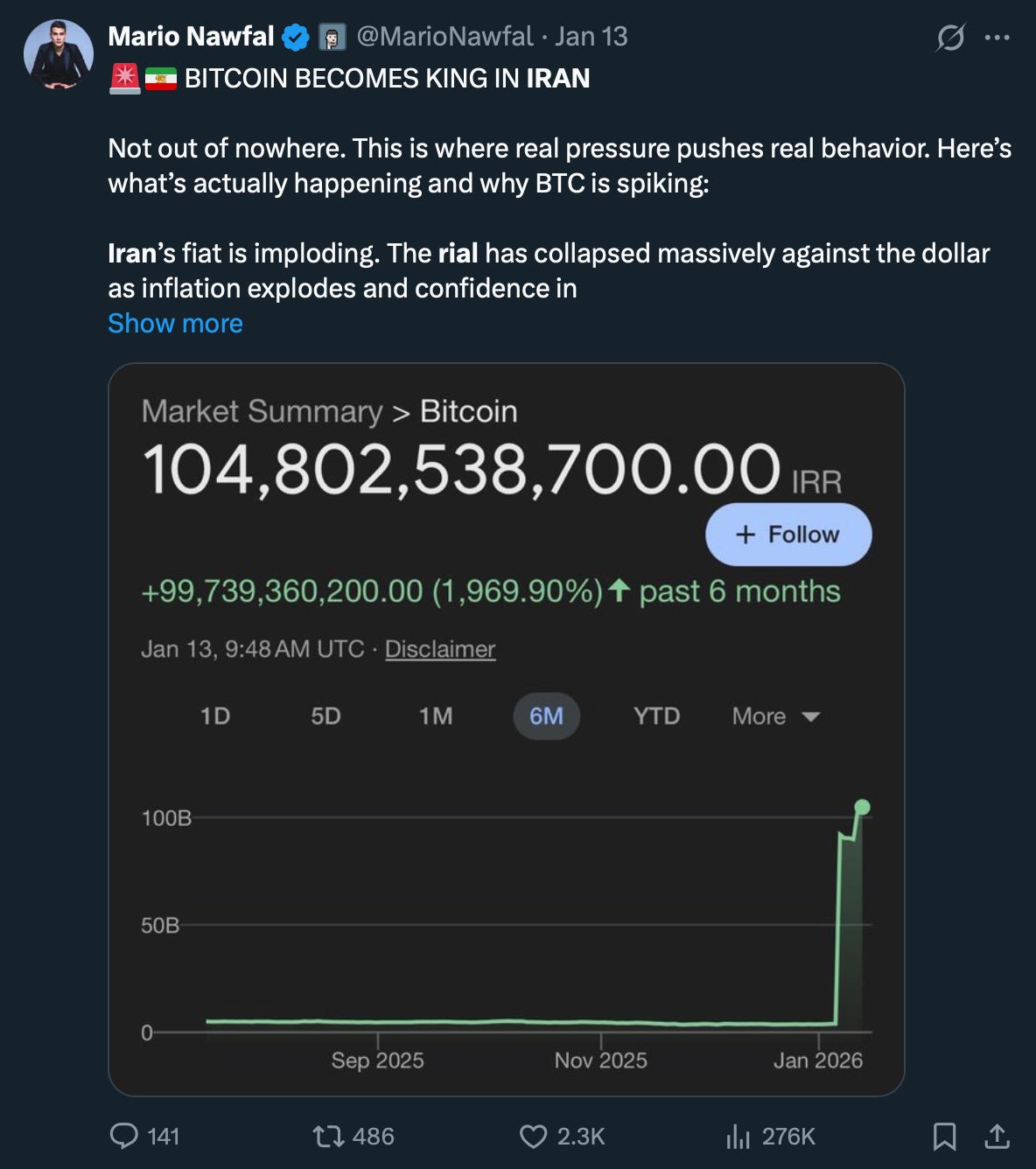 Bitcoin just traded at 104 billion Iranian rials.