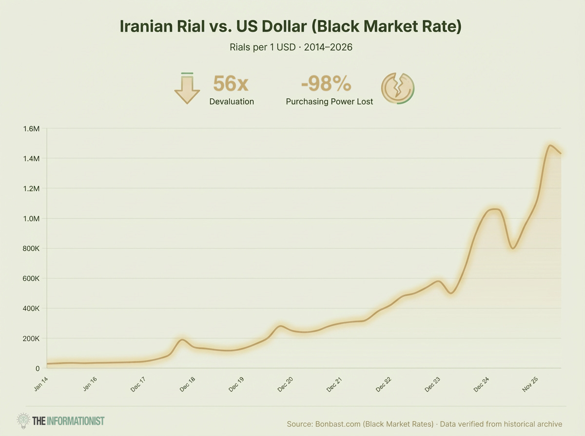 One note before we dive in: what's happening to ordinary Iranians right now is heartbreaking. Families watching their life savings evaporate. People in the streets out of desperation. But I'm not going to make this political or opine on sanctions, regime change, or US foreign policy. That's not my lane. What I am going to do is show you the mechanics of how a currency dies. Because those mechanics are universal, and they hit closer to home than you might think.