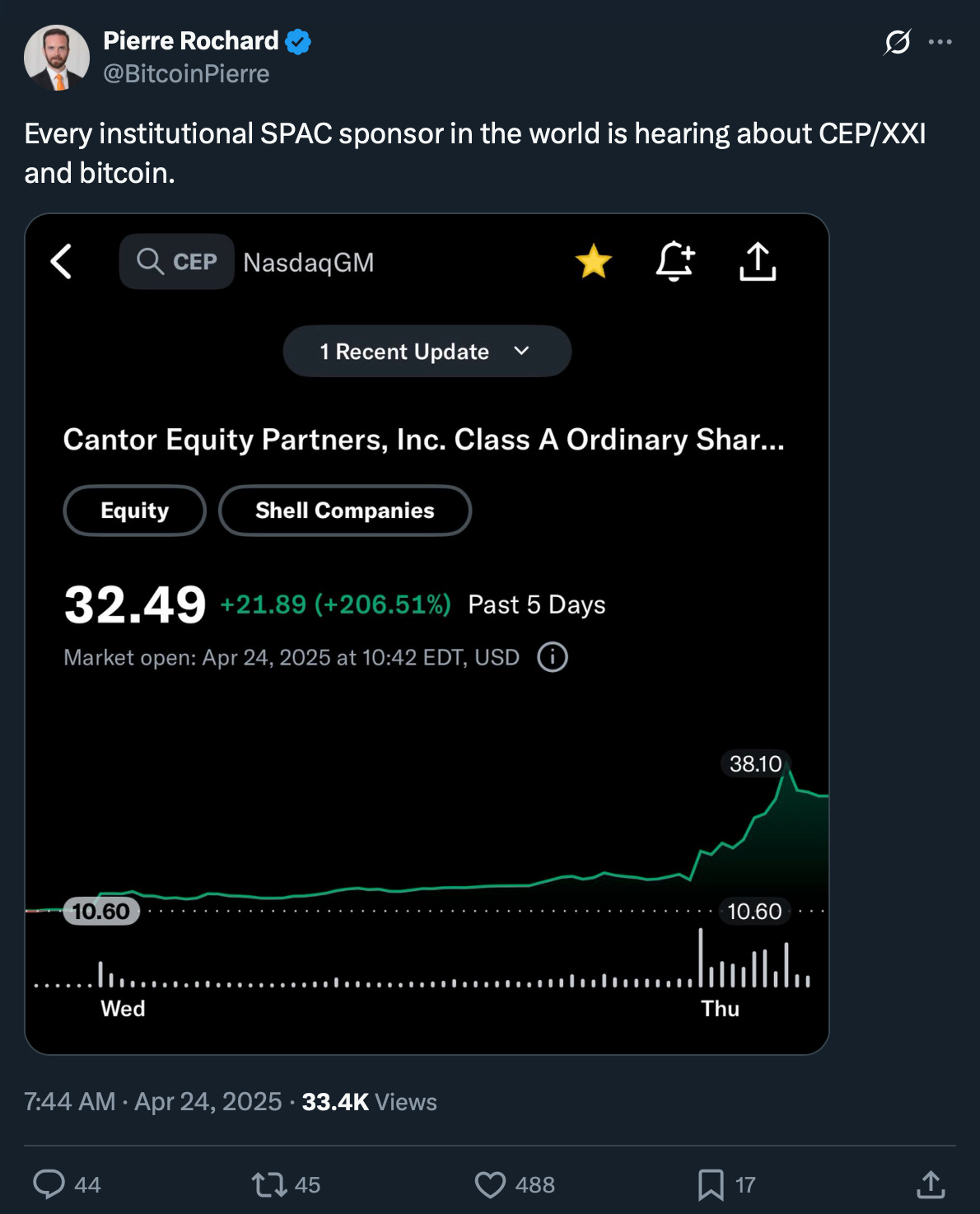But what is a SPAC, and why and how are CEP and Twenty One, a Bitcoin company using them?