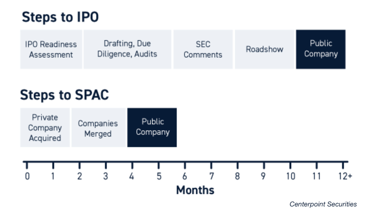 Itâs faster than a traditional IPO, which can take 12+ months with multiple rounds of legal and regulatory hurdles