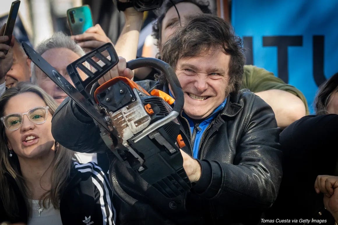 That’s Milei campaigned with a chainsaw as a prop and promised to slash government spending, eliminate entire ministries, and bring Argentina’s finances under control.