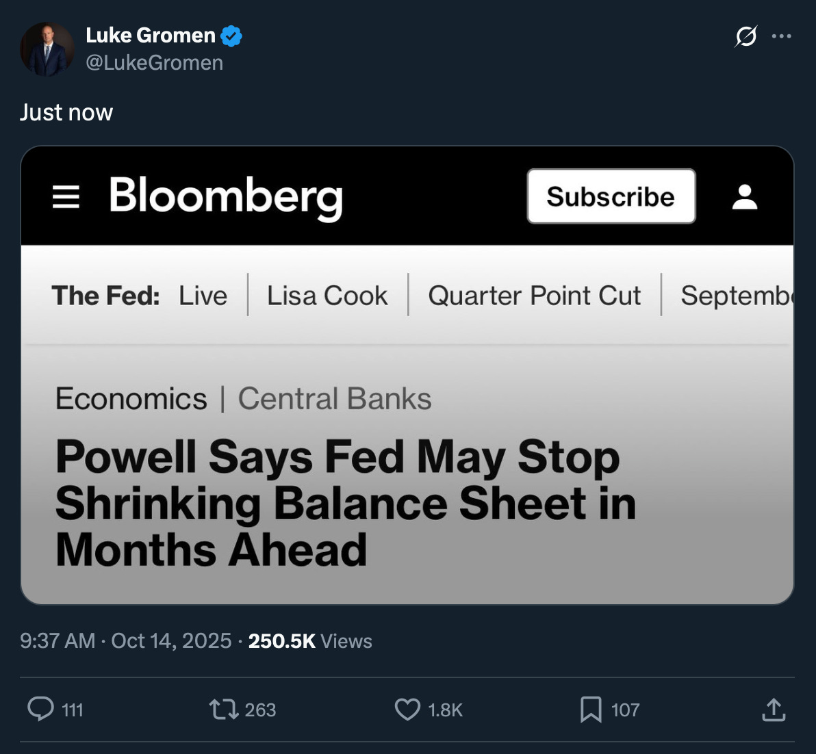 QT is dead. QE is coming. Probably Q1 2026, possibly sooner.