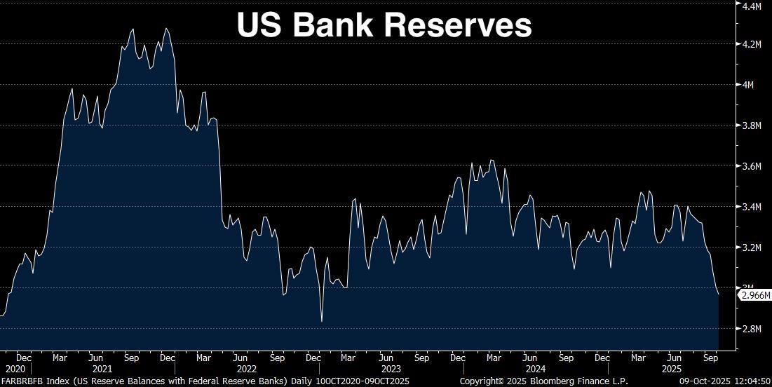 But today, reserves are at 9.71% of GDPâand weâre already below the 10% threshold that Powell has said marks the floor for ample reserves.
