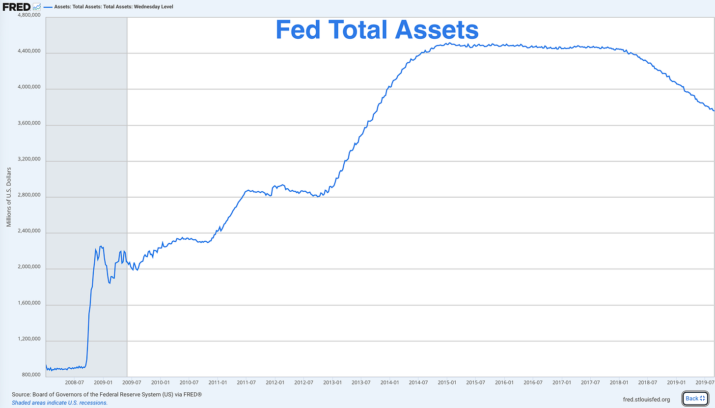 Look at 2008-2014: The Fed didnât just do a little QE. They did QE1, QE2, Operation Twist, QE3. The balance sheet went from $900B to $4.5T.