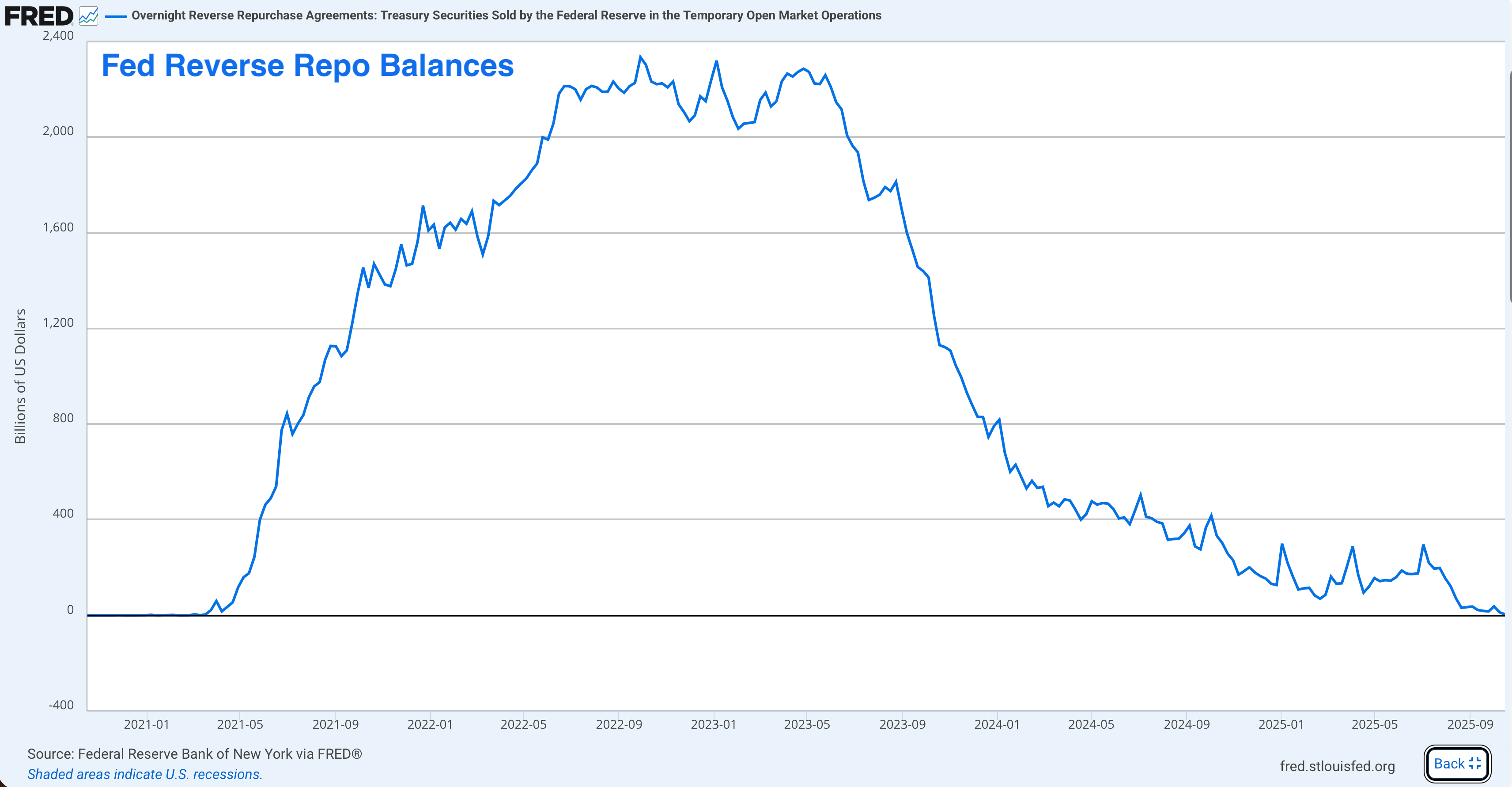 Put simply, weâre not just approaching the danger zoneâweâre already in it. With the RRP now essentially empty, thereâs no cushion left.